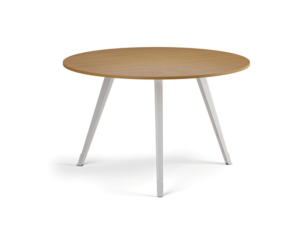 Konferenční stůl PRIMO ZEN, průměr 120 cm, bílá podnož, buk