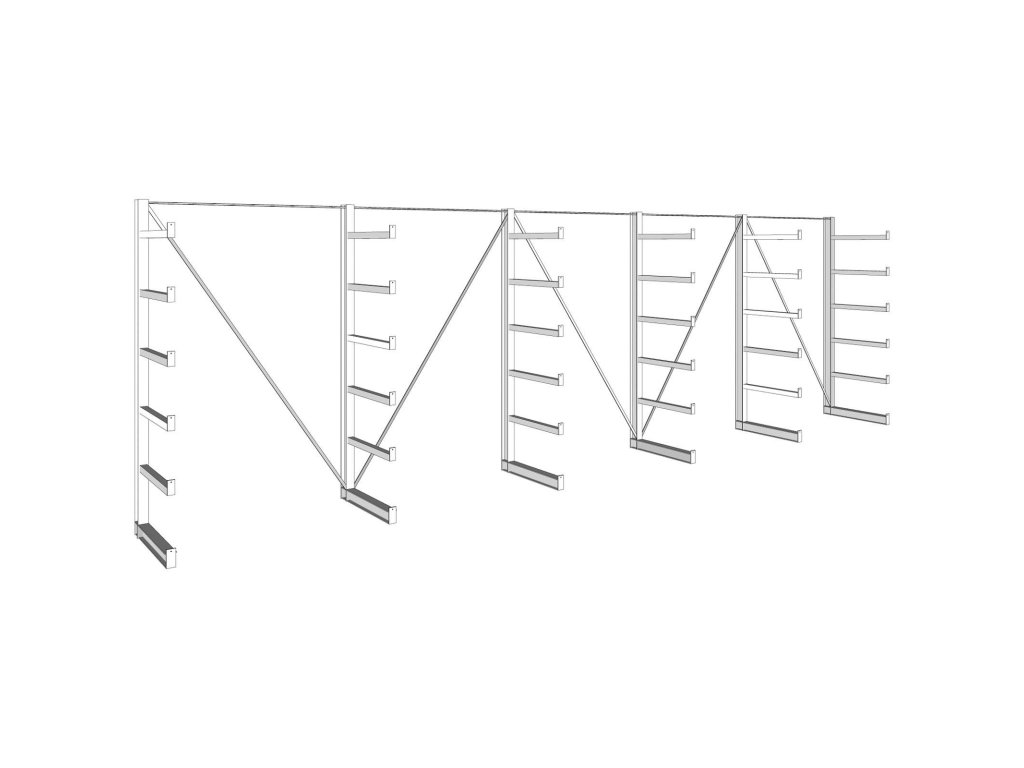 - stromečkový regál - konzoly jsou různé délky 115 - 565 mm, nosnost 135-200 kg