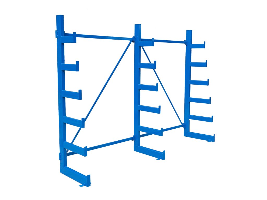 Jednostranný stromečkový konzolový regál je kompaktní a stabilní řešení pro skladování dlouhých a objemných materiálů u stěny. Ideální pro úzké prostory.