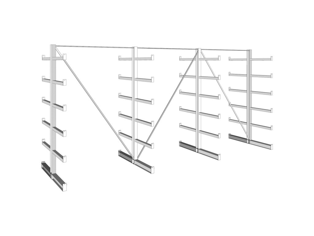 - jednotlivé stojiny regálu jsou propojeny diagonálními a podélnými výztuhami