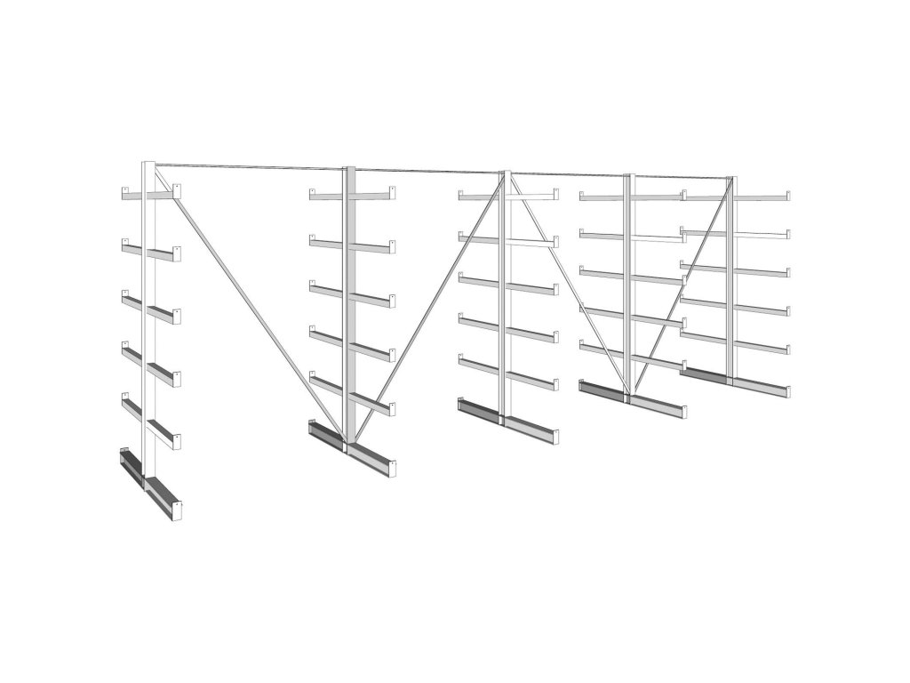 - jednotlivé stojiny regálu jsou propojeny diagonálními a podélnými výztuhami