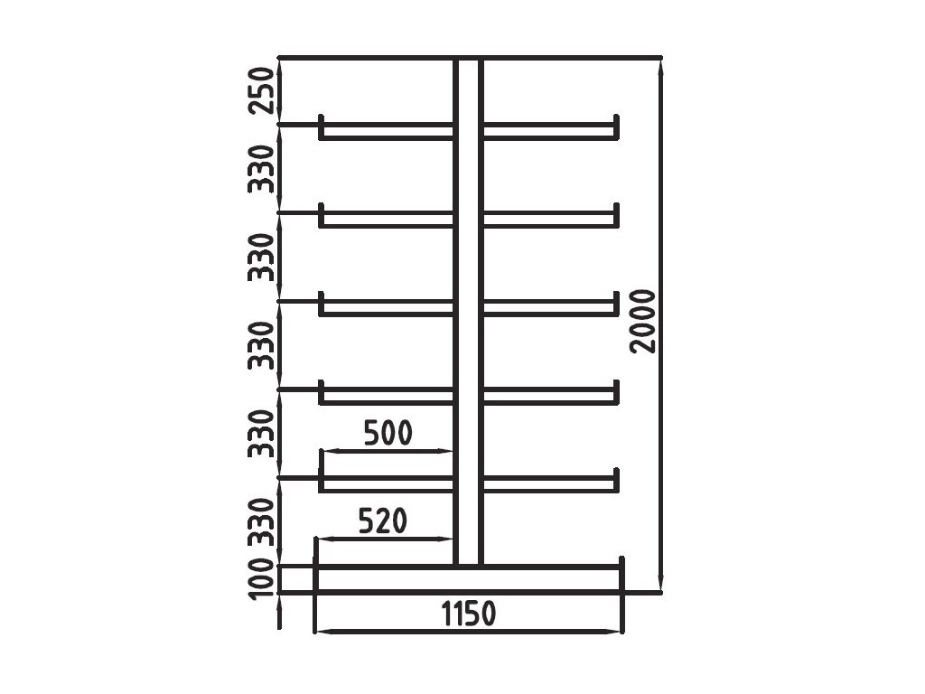 Konzolový regál, oboustranný, 200 kg, 2000 x 5400 x 1150 mm