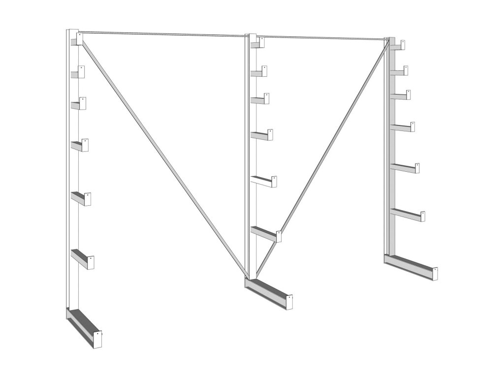- konzolové regály slouží zejména pro skladování pro skladování těžkého a dlouhého materiálu jako jsou trubky, latě, desky, apod.