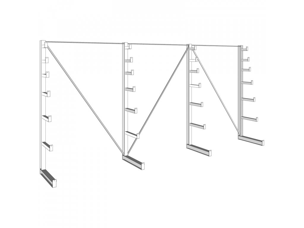 - konzolové regály slouží zejména pro skladování pro skladování těžkého a dlouhého materiálu jako jsou trubky, latě, desky, apod.