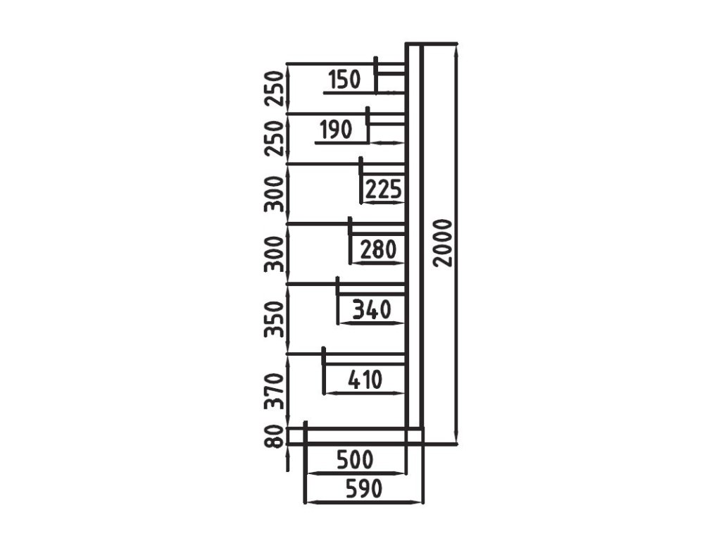- stromečkový regál - konzoly jsou různé délky 115 - 565 mm, nosnost 135 kg
