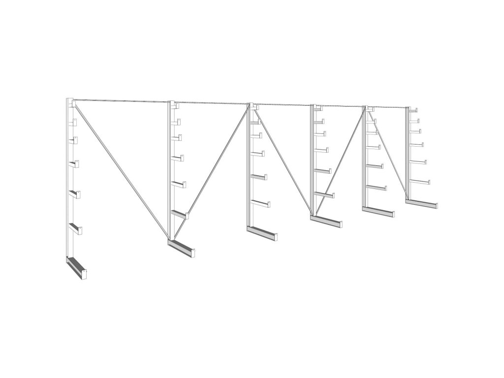 - konzolové regály slouží zejména pro skladování pro skladování těžkého a dlouhého materiálu jako jsou trubky, latě, desky, apod.