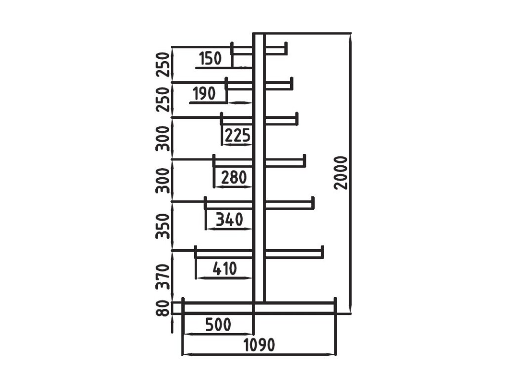 - stromečkový regál - konzoly jsou různé délky 115 - 565 mm, nosnost 135 kg