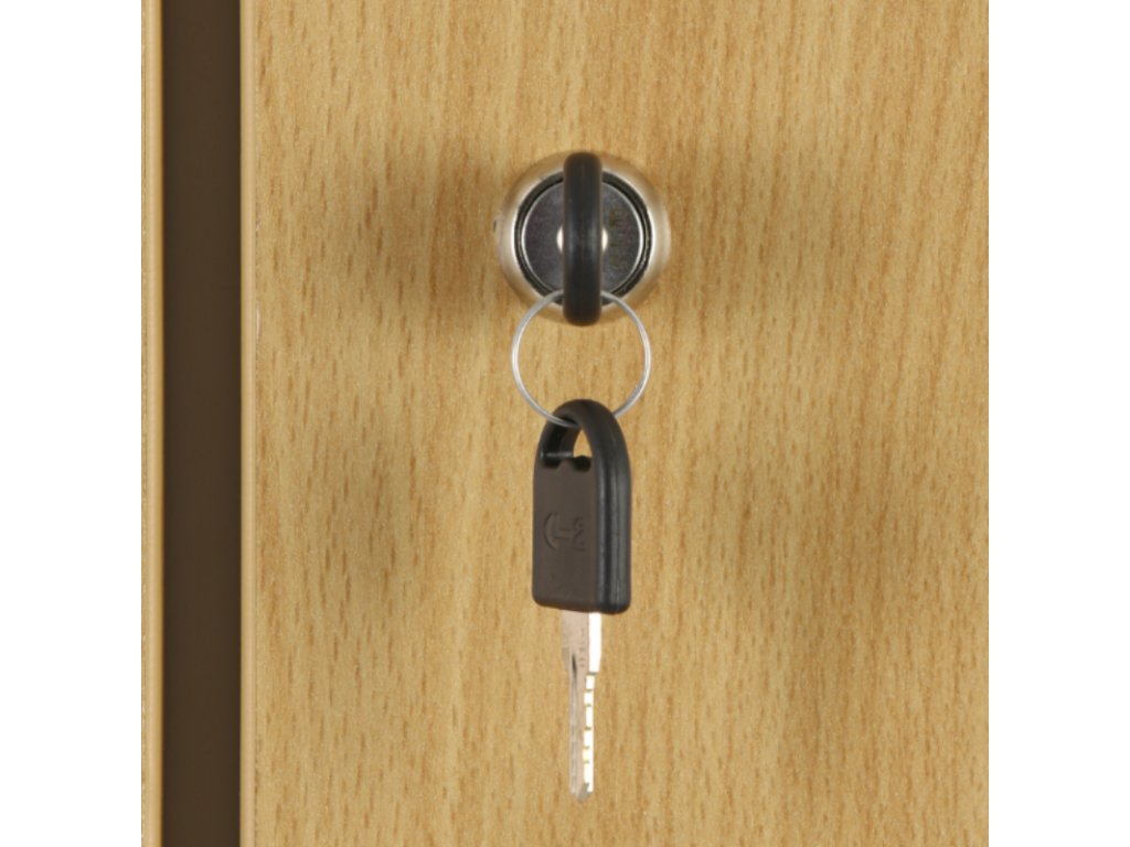 Dveře snadno uzamknete pomocí cylindrického zámku na klíč. Standardně jej dodáváme se 2 klíči v balení. Tento typ zámku je běžnou volbou pro individuálně přidělené skříňky.