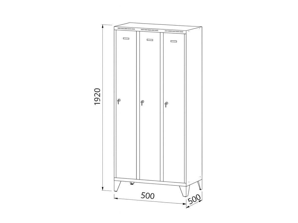Skříňku tvoří 3 samostatné části o standardní šířce oddílu 300 mm, které jsou umístěny v jednom společném korpusu. Oproti klasické variantě nabízí ještě jedno místo navíc. Šetří tak nejen místo v šatně, ale i náklady, aniž by bylo sníženo pohodlí uživatelů. Ideální pro školy, sportoviště i zázemí s více uživateli a omezeným prostorem.