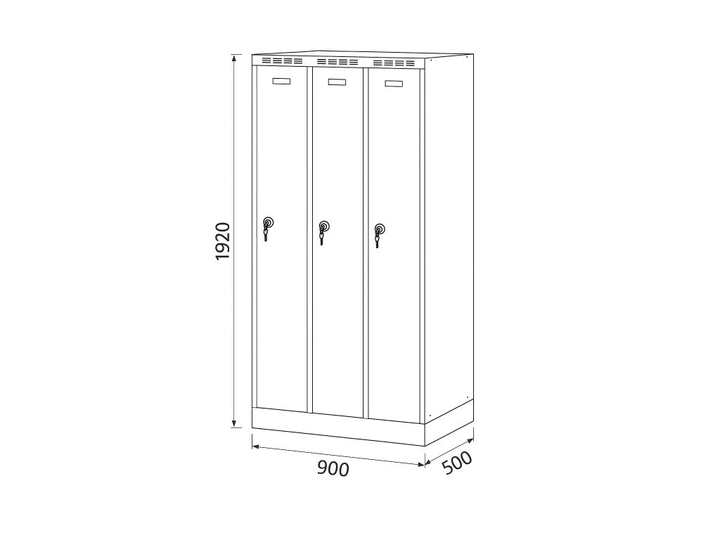 Skříňku tvoří 3 samostatné části o standardní šířce oddílu 300 mm, které jsou umístěny v jednom společném korpusu. Oproti klasické variantě nabízí ještě jedno místo navíc. Šetří tak nejen místo v šatně, ale i náklady, aniž by bylo sníženo pohodlí uživatelů. Ideální pro školy, sportoviště i zázemí s více uživateli a omezeným prostorem.