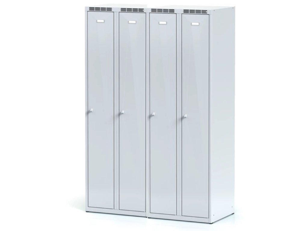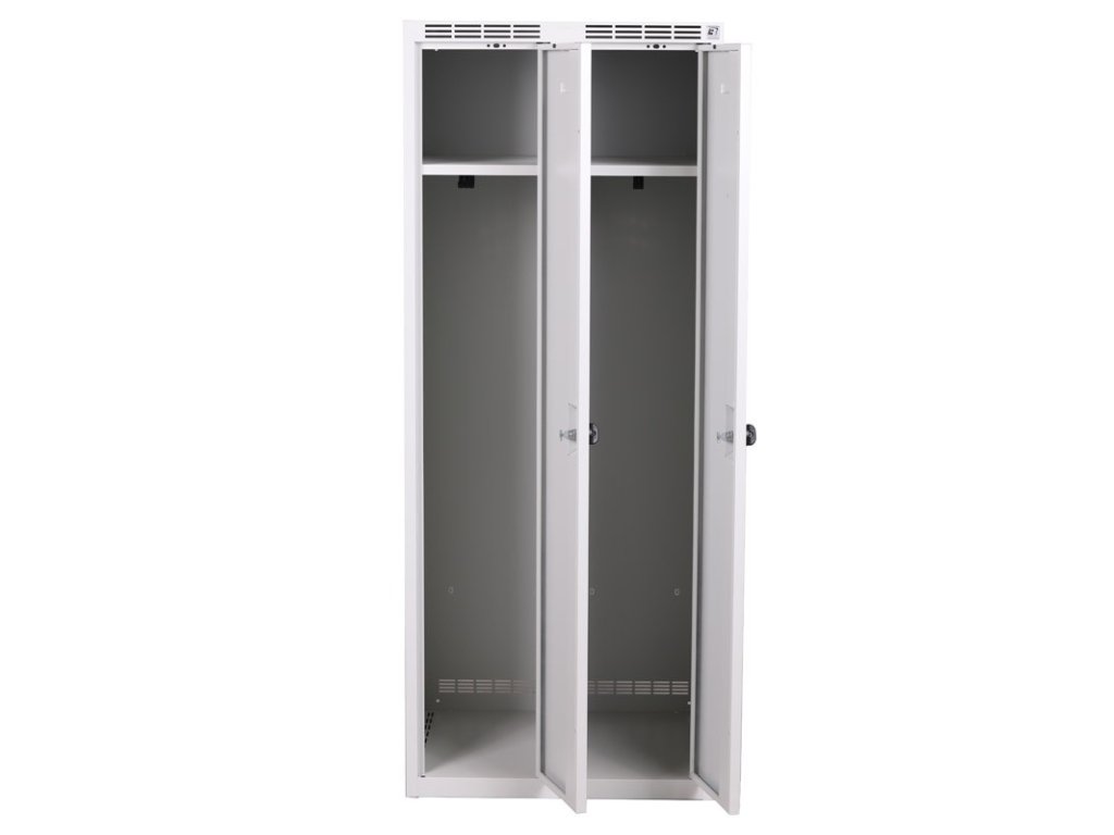 Skříňku tvoří 2 samostatné části o standardní šířce oddílu 300 mm. Tento klasický typ skříňky je nejběžnější volbou pro školy, firmy i sportovní zařízení. Nabízí dostatek prostoru pro osobní věci i oděvy.