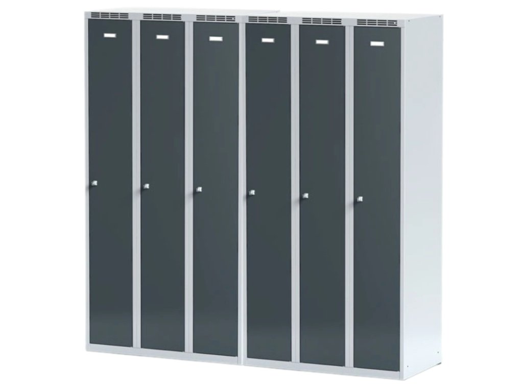 Skříňku tvoří 3 samostatné části o standardní šířce oddílu 300 mm, které jsou umístěny v jednom společném korpusu. Oproti klasické variantě nabízí ještě jedno místo navíc. Šetří tak nejen místo v šatně, ale i náklady, aniž by bylo sníženo pohodlí uživatelů. Ideální pro školy, sportoviště i zázemí s více uživateli a omezeným prostorem.