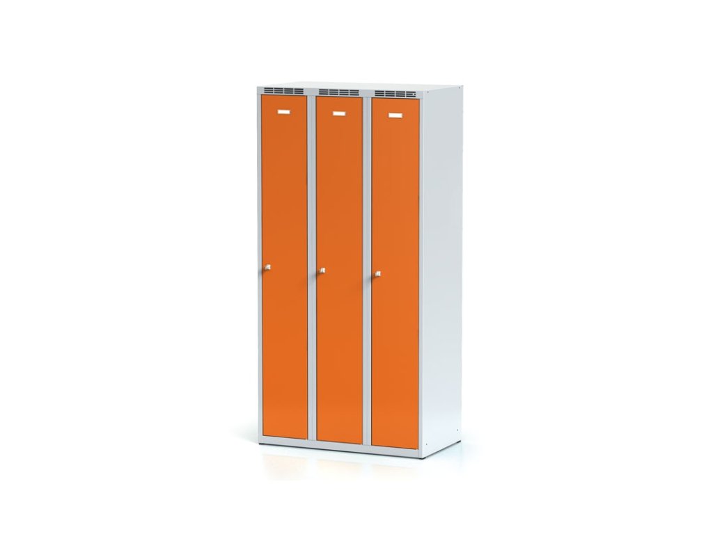 Kovová šatní skříňka S6, 3 oddíly, 1800 x 900 x 500 mm, cylindrický zámek, oranžové dveře
