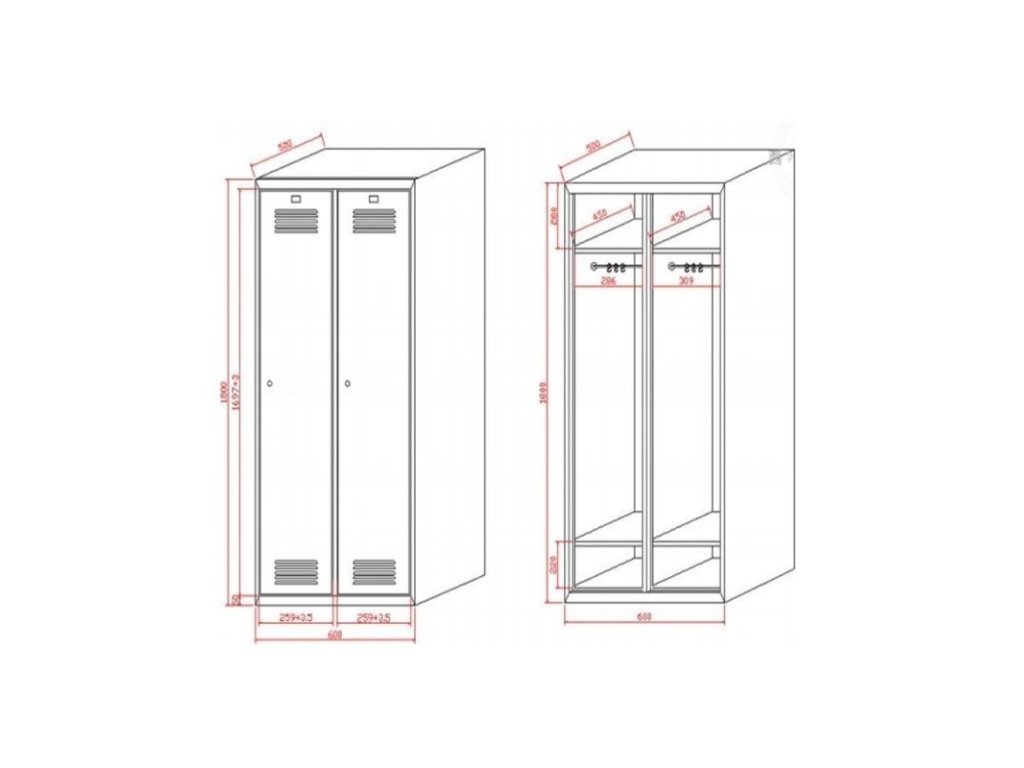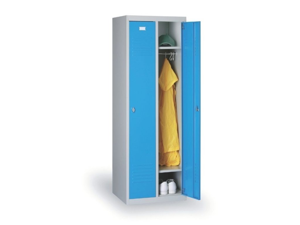 Skříňku tvoří 2 samostatné části o standardní šířce oddílu 300 mm. Tento klasický typ skříňky je nejběžnější volbou pro školy, firmy i sportovní zařízení. Nabízí dostatek prostoru pro osobní věci i oděvy.