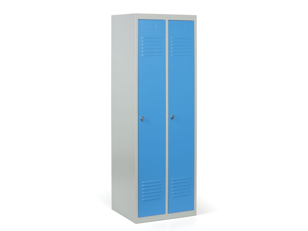 Kovová šatní skříňka S2, 2 oddíly, 1800 x 600 x 500 mm, demont, otočný zámek, modré dveře