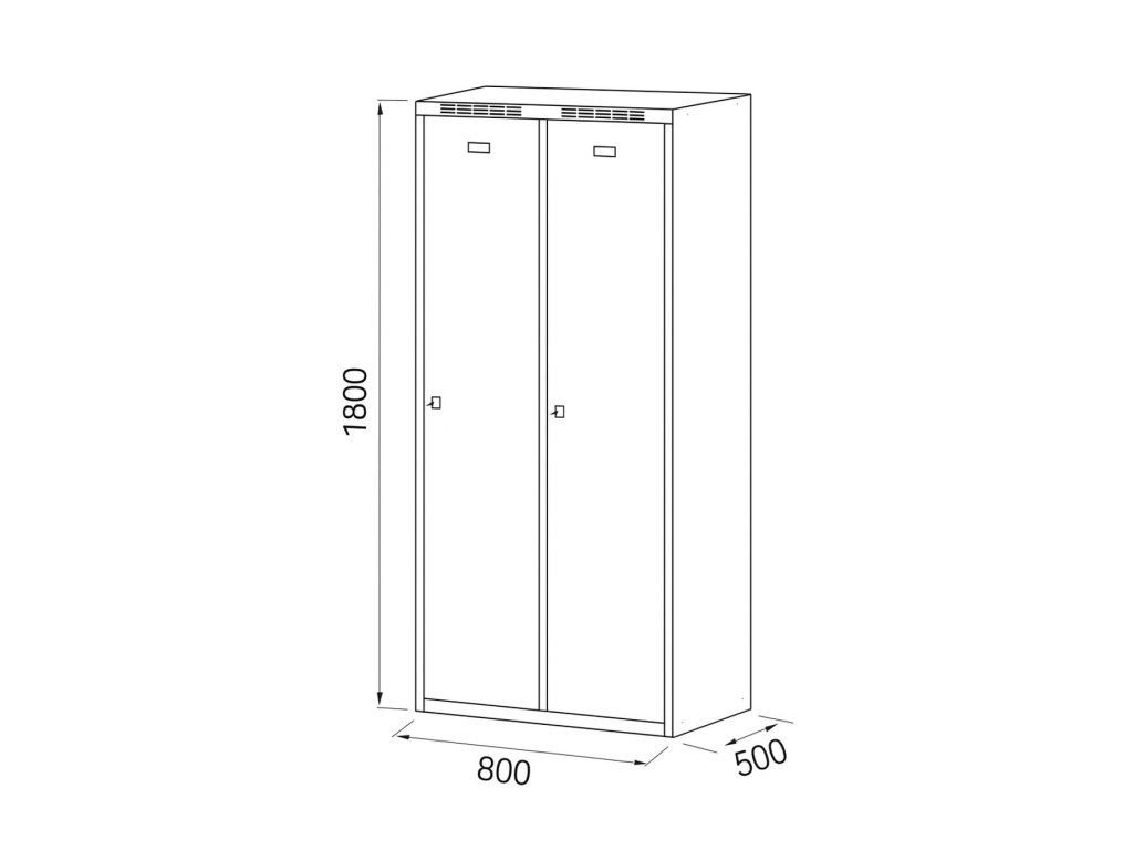 Skříňku tvoří 2 rozšířené části o šířce oddílu až 400 mm, které poskytují více místa než standardní varianty. Každý oddíl je navíc rozdělen pevnou mezistěnou, díky čemuž lze snadno oddělit civilní a pracovní oděv. Větší šířka zajišťuje pohodlné uložení i objemnějších věcí.