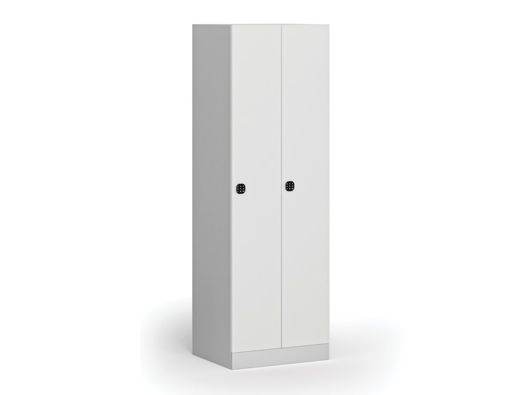 Kovová šatní skříňka S1, 2 oddíly, 1850 x 600 x 500 mm, kódový zámek, laminované dveře, bílá