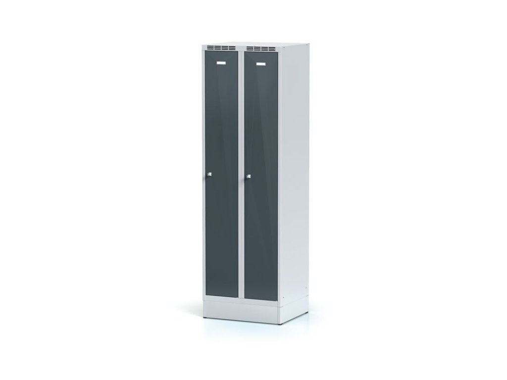 Kovová šatní skříňka s7 na soklu, 2 oddíly, 1904 x 600 x 500 mm, cylindrický zámek, tmavě šedé dveře