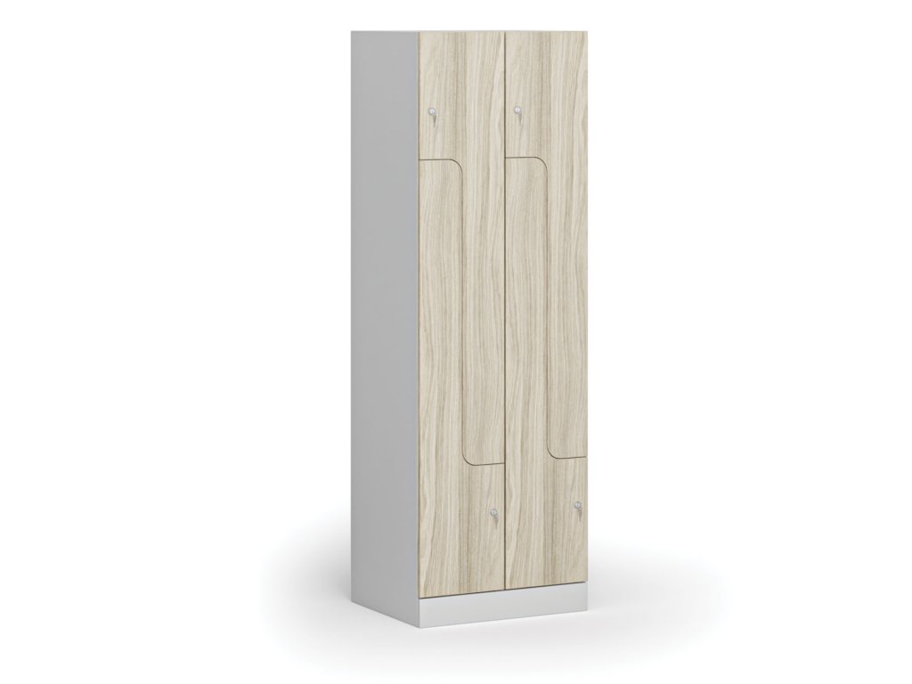 Kovová šatní skříňka S1 Z, 4 oddíly, 1850 x 600 x 500 mm, demont, cylindrický zámek, laminované dveře, dub přírodní