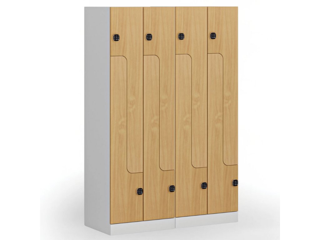 Kovová šatní skříňka S1 Z, 4 oddíly, 1850 x 600 x 500 mm, demont, kódový zámek, laminované dveře, bříza