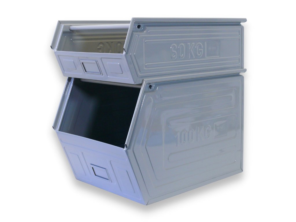 - zkosená čelní část bedny usnadňuje ukládání nebo odebírání materiálu při uložení beden ve stohu