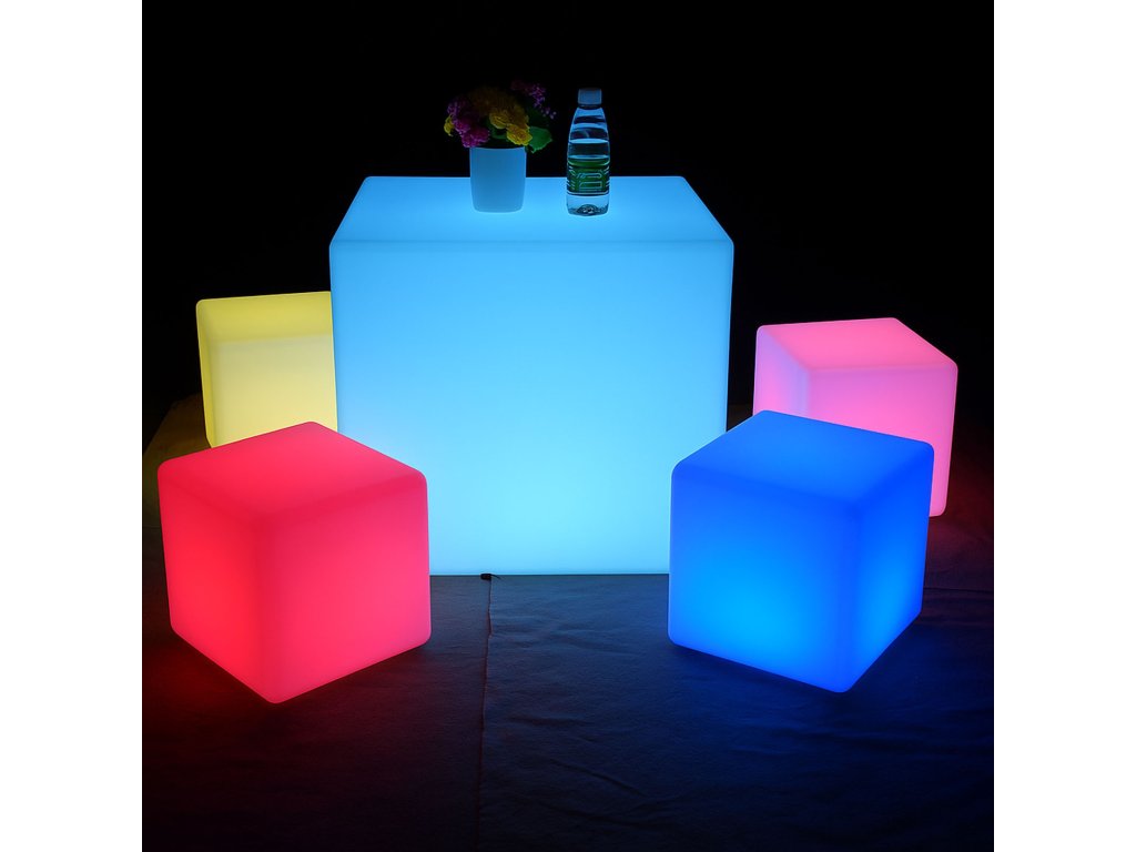 Vneste do svého prostoru styl, barvy a moderní atmosféru díky LED svítícímu barovému nábytku! Tento designový kousek z odolného plastu PE rozzáří interiér i exteriér až 16 různými barvami, které jednoduše ovládáte dálkovým ovladačem. Nechybí také efekty jako blikání, několik typů barevných přechodů (flash, strobe, fade, smooth). Díky dobíjecí baterii, vysoké odolnosti a vodotěsnosti IP65 je tento nábytek ideální volbou nejen do domácností, ale i pro komerční využití – do barů, hotelů, na zahradní party nebo třeba do showroomů.