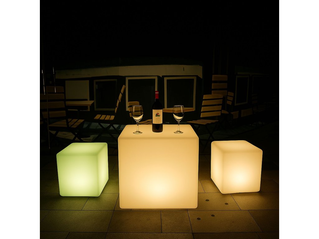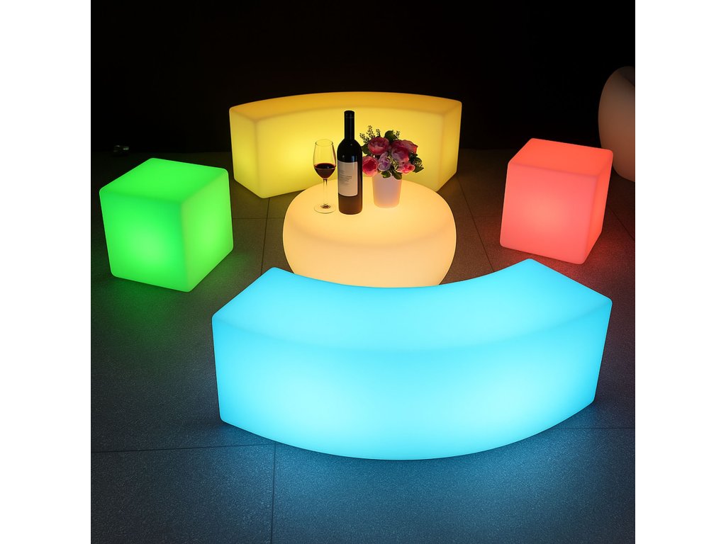 Vneste do svého prostoru styl, barvy a moderní atmosféru díky LED svítícímu barovému nábytku! Tento designový kousek z odolného plastu PE rozzáří interiér i exteriér až 16 různými barvami, které jednoduše ovládáte dálkovým ovladačem. Nechybí také efekty jako blikání, několik typů barevných přechodů vč. tzv. fade efektu. Díky dobíjecí baterii, vysoké odolnosti a vodotěsnosti IP65 je tento nábytek ideální volbou nejen do domácností, ale i pro komerční využití – do barů, hotelů, na zahradní party nebo třeba do showroomů.
