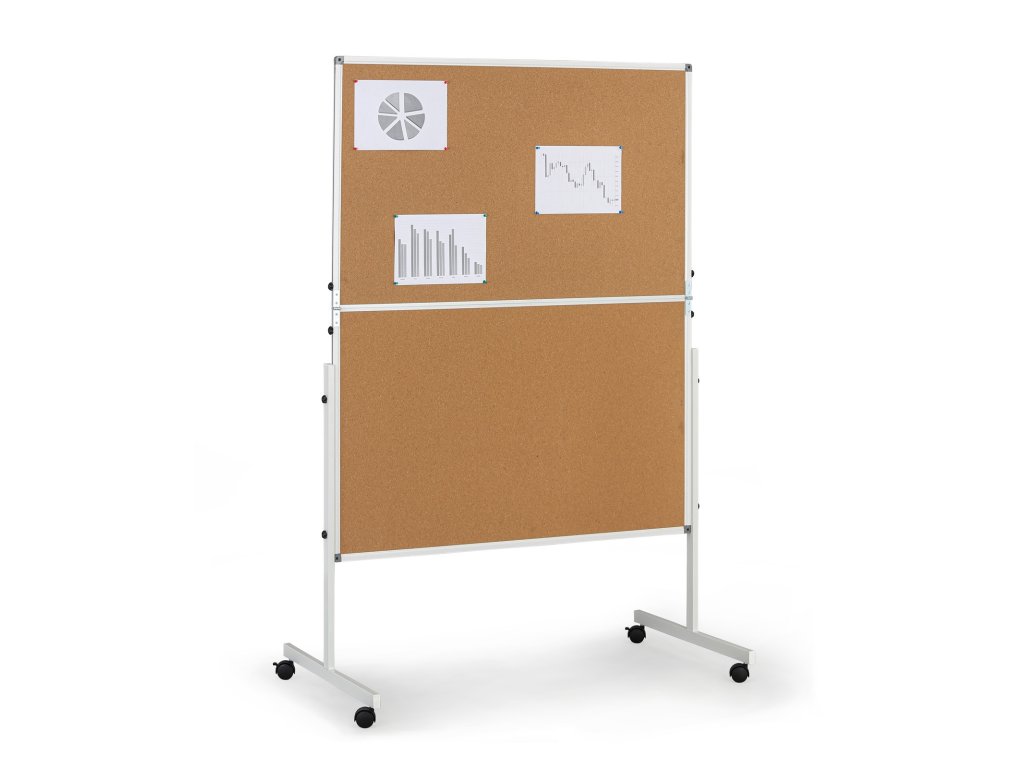Mobilní informační tabule, sklopná, korek, 1200 × 1500 mm