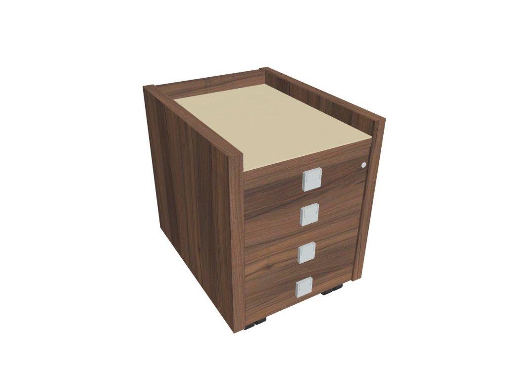 Kancelářský mobilní kontejner ASSIST, 4 zásuvky, prosklený, ořech