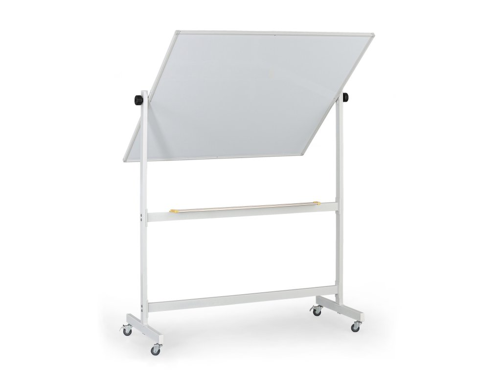 Mobilní magnetická tabule s lakovaným povrchem je praktickým řešením pro každodenní použití při výuce, prezentacích nebo poradách. Lakovaná bílá ocel poskytuje hladký povrch pro pohodlné psaní a snadné mazání, přičemž magnetická funkce umožňuje uchycení poznámek či dokumentů. Díky kolečkům je tabule snadno přemístitelná a možnost fixace v libovolné poloze zajišťuje její stabilitu při používání. Pevný hliníkový rám s ABS rohy a praktická odkládací lišta doplňují funkční a profesionální provedení tabule.