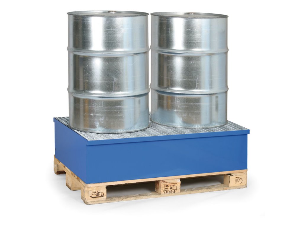 Modrá záchytná vana s roštem pro 2 sudy, objem 240 L