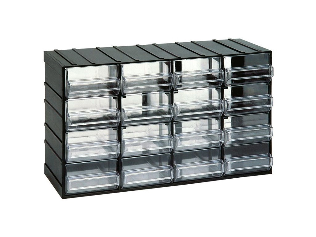 Modulová skříňka se zásuvkami, 382 x 148 x 230 mm, 16 zásuvek