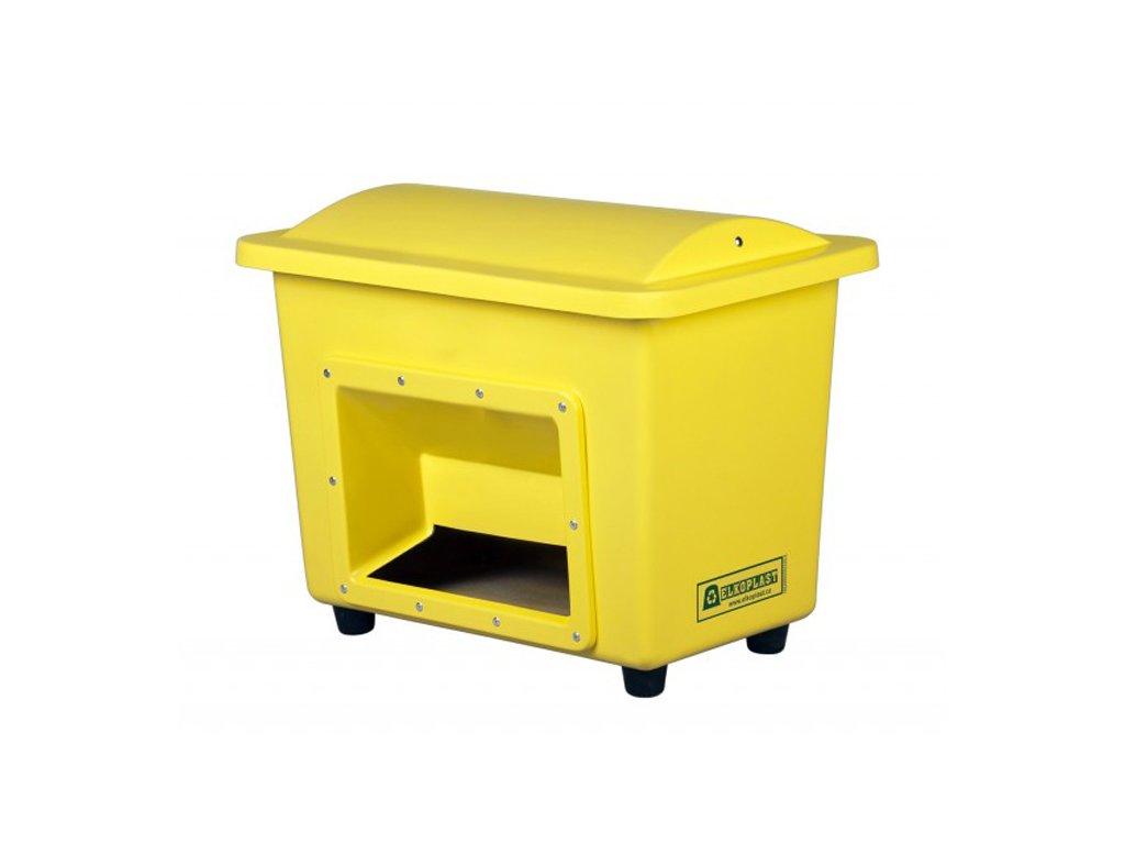 Nádoby na zimní posyp jsou určeny k uskladnění posypového materiálu (písek, šterk, sůl apod.). Jsou instalovány na frekventovaných místech a v zimě na rizikových úsecích: u rodinných i obytných domů, u podniků, budov veřejných institucí, na zastávkách, u čerpacích stanic, u obchodních center, mostů apod. Nádoby jsou vyrobeny z odolného sklolaminátu s panty z nerezavějící oceli. Ostatní díly jsou žárově zinkovány. Povrch je odolný vůči povětrnostním vlivům a snadno se čistí od sprejového nástřiku. Nádoby lze snadno přepravovat. Nádoby mají estetický vzhled, tvarovou stabilitu a dlouhou životnost. Mohou být na přání upraveny pro manipulaci vysokozdvižným vozíkem, doplněny kotvením proti krádeži nebo vyrobeny bez výsypného otvoru.