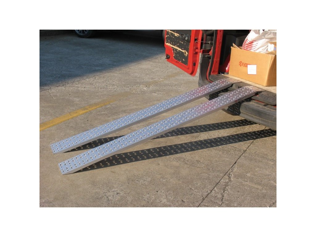 Hliníkové nájezdové rampy pro Hobby použití. Jejich výhodou je lehká konstrukce a nízká cena. Rampy jsou vhodné pro pojezd např. zahradní technikou, vozíky, rudl, při stěhování apod. Vhodné pro dodávkové vozy nebo přívěsné vozíky. Dodáváno v páru.