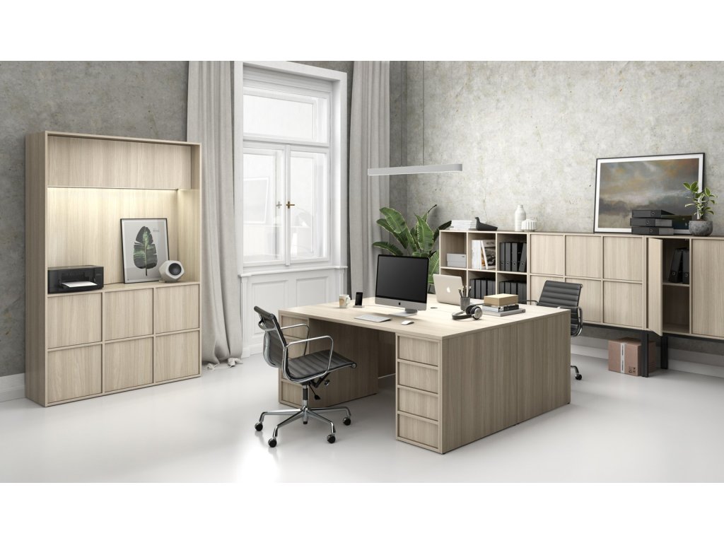 Kolekce kancelářského nábytku FRAME z vlastní výroby B2B Partner spojuje funkčnost, promyšlenou členitost úložného prostoru a moderní jednoduchost. Charakteristické rámování s jemnými konturami a precizní zpracování všech prvků bez madel dodávají nábytku osobitý a reprezentativní vzhled. Přírodní tóny v kombinaci u vybraných variant s kovovou podnoží v černé nebo bílé barvě vytvářejí harmonické prostředí navíc i s lehce industriálním nádechem. Prostor, ale i přesto působí elegantně, klidně a nerušivě.