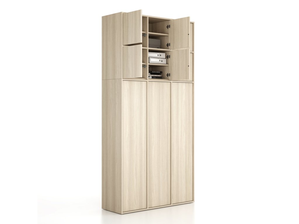 Nástavby FRAME jsou ideálním řešením, pokud potřebujete více místa pro dokumenty, archiv nebo kancelářské potřeby, ale nechcete přidávat další skříně do prostoru. Jednoduše je umístíte na stávající skříň FRAME a okamžitě tak rozšíříte úložný prostor směrem vzhůru – bez narušení jednotného a elegantního vzhledu celé sestavy.