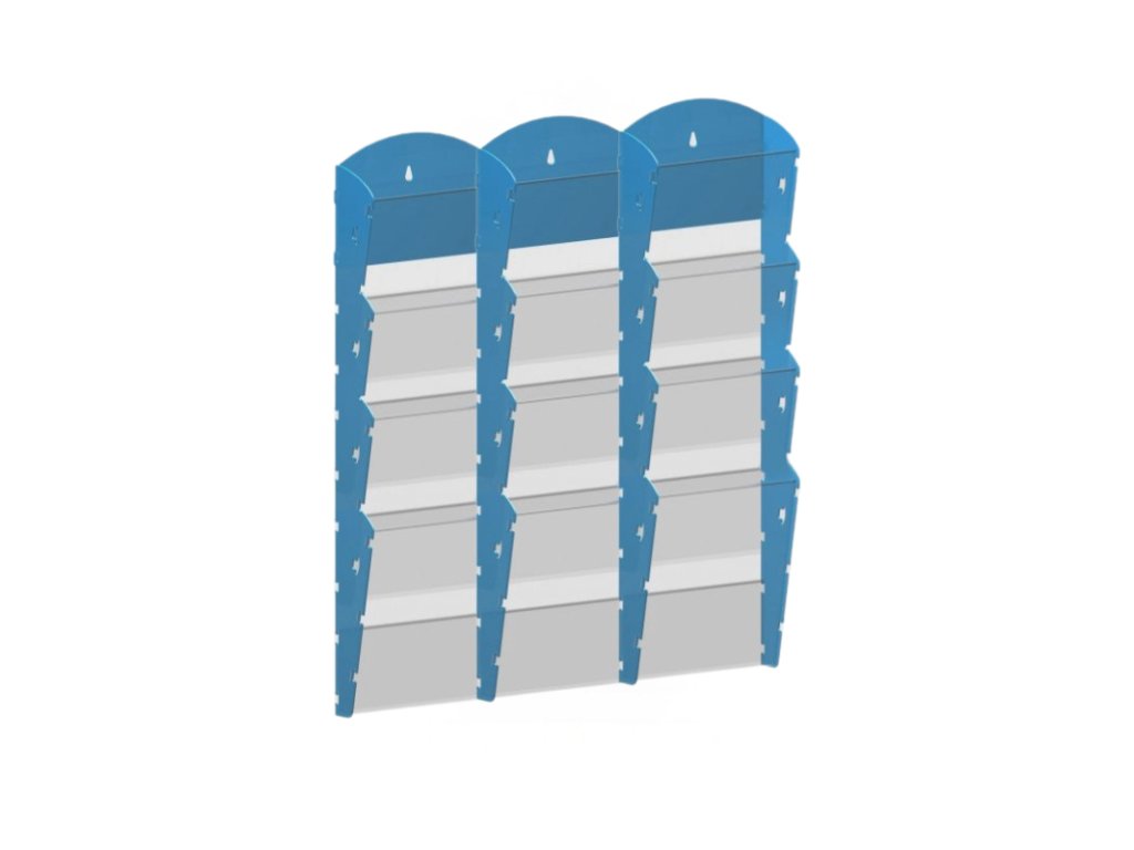 Nástěnný plastový zásobník na prospekty - 3 x 4 A4, modrý