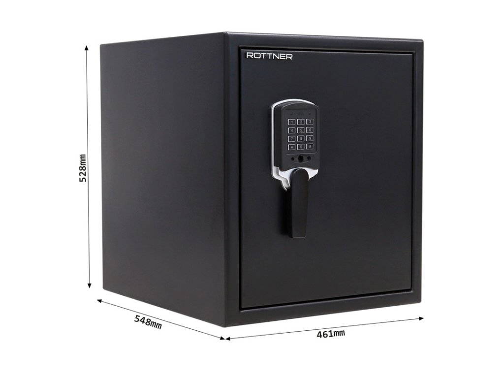- robustní ohnivzdorný a voděodolný sejf vybavený elektronickým zámkem