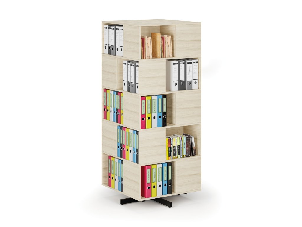 Tento otočný regál je praktickým řešením pro přehledné ukládání šanonů, knih nebo kancelářských potřeb. Díky otočné konstrukci se snadno dostanete ke všem uloženým věcem bez nutnosti regál obcházet – ideální volba pro kanceláře, archivy a kartotéky.