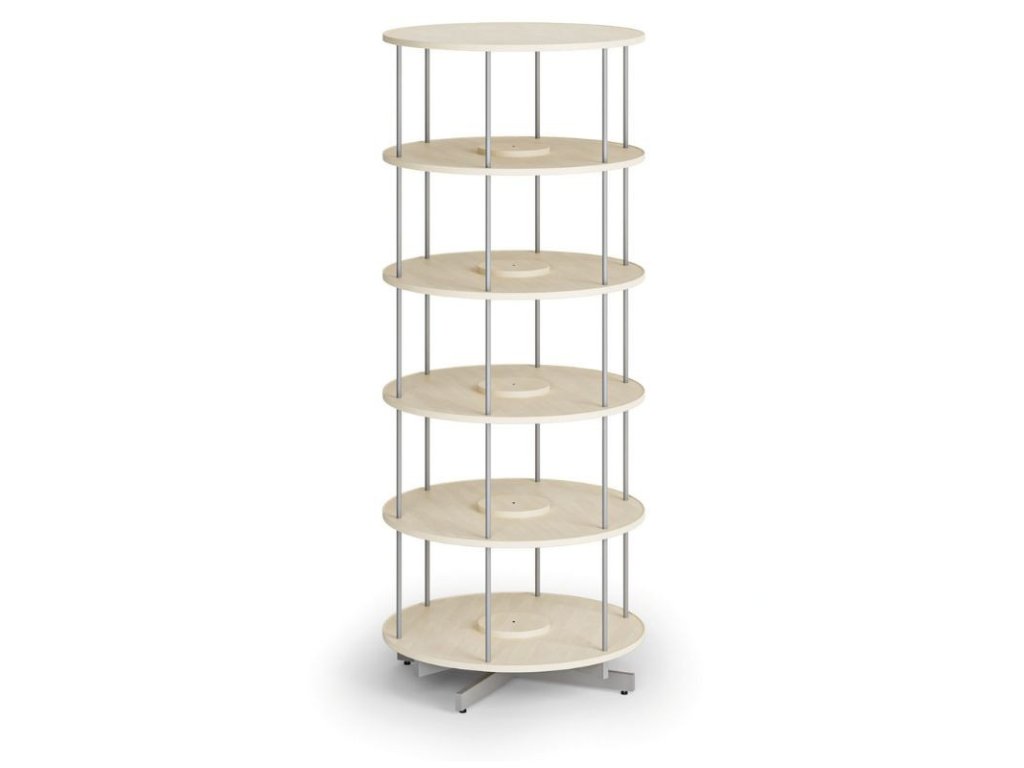 Archivační systém, který Vám ušetří prostor při archivaci Vašich písemností. Díky otočnému mechanismu lze uspořádat až 144 pořadačů, otočný sloup si vyžádá jen asi 1 m2 pro jeho umístění a pro vlastní přístup k pořadačům. Při běžném použití archivační skříně, nebo regálů na pořadače potřebujete prostor cca 2 m2. Výhoda úspory místa při použití otočných archivačních sloupů se zvyšuje úměrně s počtem instalovaných sloupů, například při použití dvou sloupů je již úspora místa 1,5 m2. Otočná skříň je posazena na otočný kříž, velmi lehké otáčení zajišťují ložiska umístěná přímo v otočném stojanu vybaveném stavěcími šrouby, které slouží k vyrovnání možných nerovností podlahy. Konstrukce skříně je samonosná, zajišťující velmi dobrou pevnost a stabilitu. Patra skříně jsou z laminované dřevotřísky s plastovu hranou zabraňujcí samovolnému vysunutí pořadače mimo obvod skříně. Patro je možno otočit, čímž vznikne deska bez hran zabraňující samovolnému vysunutí pořadačů. Kapacita jednoho patra je 24 pořadačů. Patro tvoří kruhová laminová deska o průměru 80 cm. Všechna patra se otáčejí najednou. Lze vytvořit až šestipatrouvou archivační otočnou skříň. Standardní barevné provedení je v šedé a černé barvě. Pořadače na fotografiích nejsou součástí dodávky. Skříň je dodávána v kartonu s návodem k jednoduché montáži.