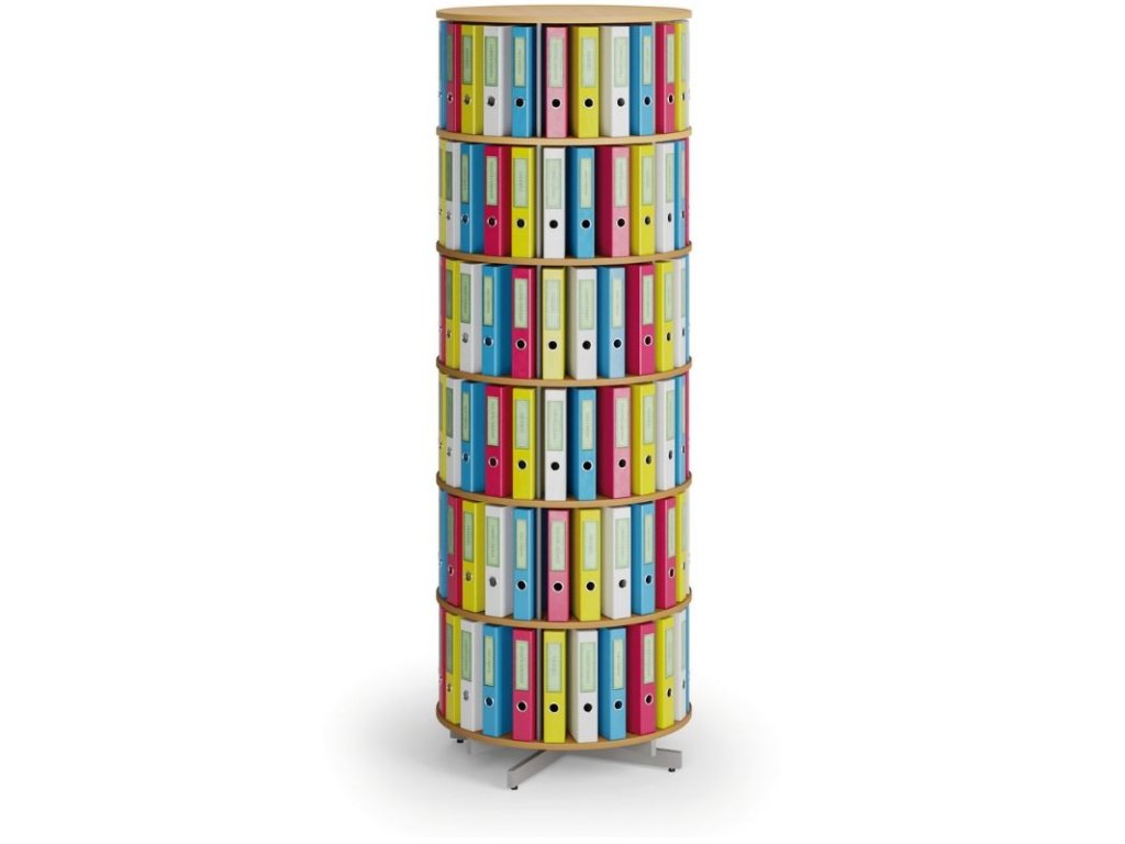 Otočný regál na šanony, 6 pater, buk