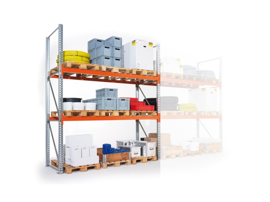 - paletové regály nabízíme jako kompletní sestavy regálových rámů, nosníků a výstuh