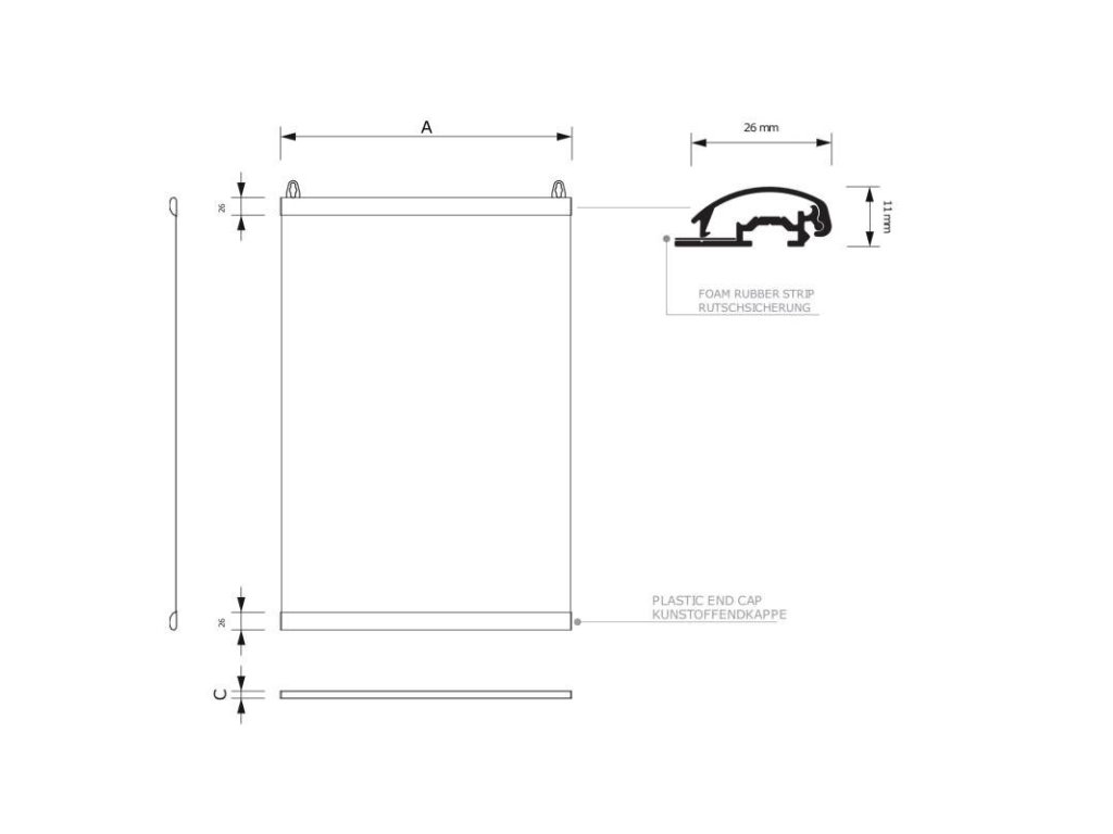 - sada dvou plakátových lišt (poster snapp) pro zavěšení plakátu