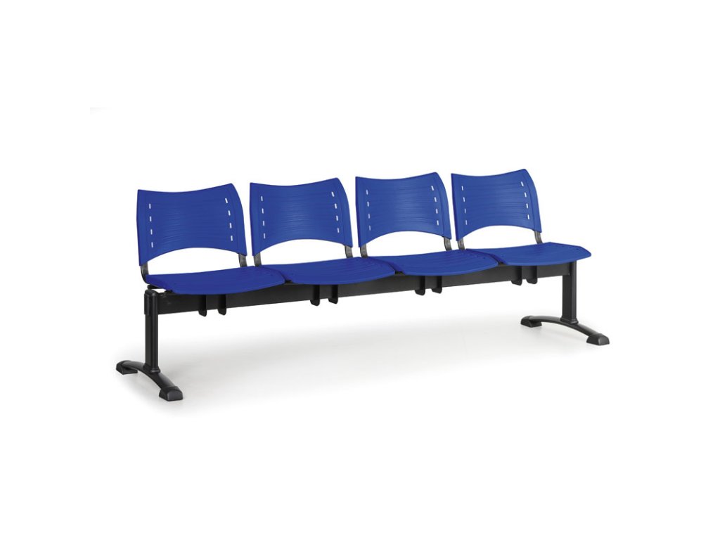 Plastová lavice do čekáren VISIO, 4-sedák, modrá, černé nohy