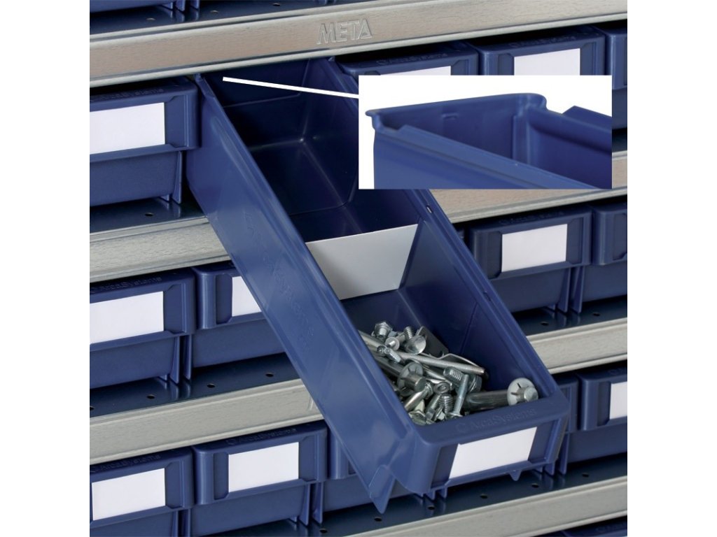 - zarážka na zadní stěně pro zajištění proti vypadnutí boxu