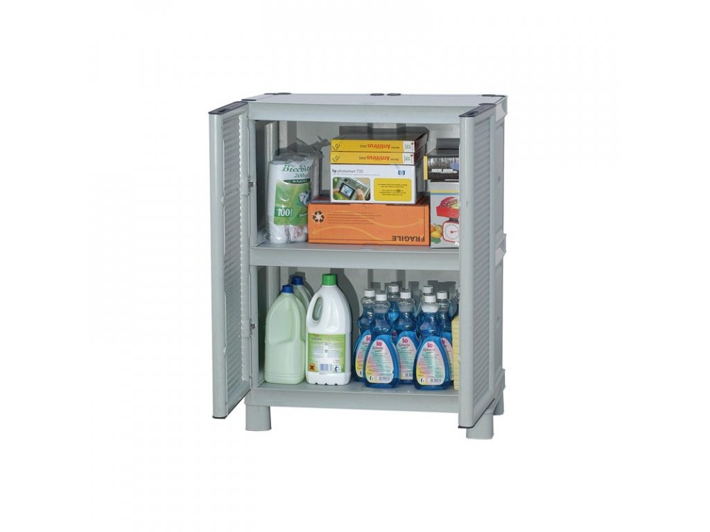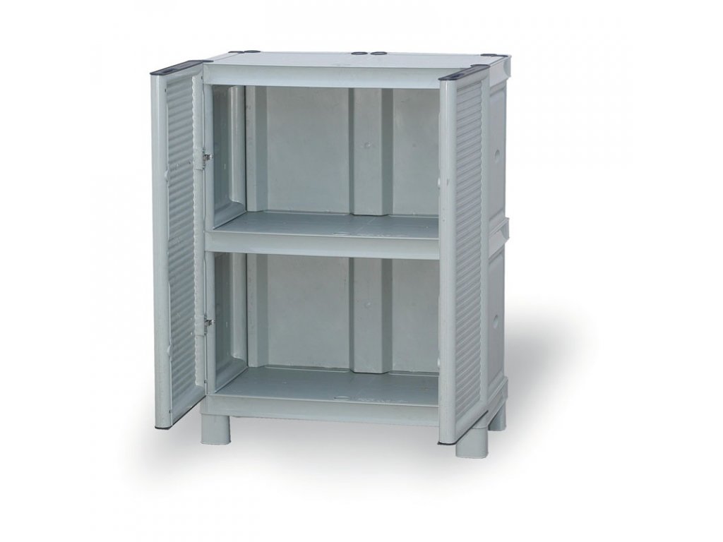 Plastová skříň policová, nízká, 700 x 390 x 920 mm, šedá