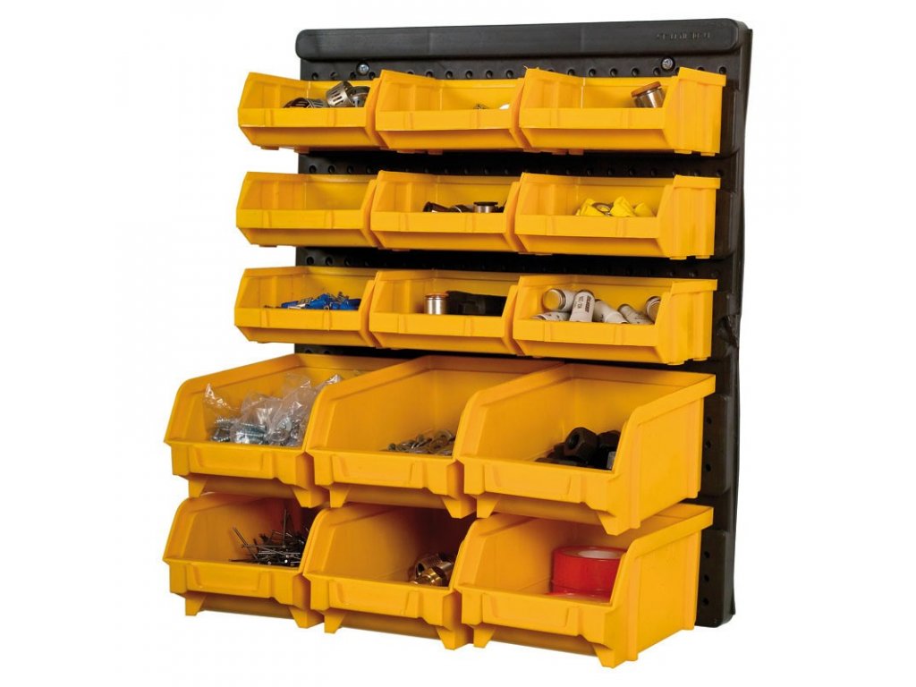 Černá plastová stěna na nářadí s boxy, 15 boxů