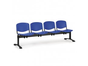 Plastová lavice do čekáren ISO, 4-sedák, se stolkem, modrá, černé nohy – Skladem10 578 Kč