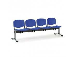Plastová lavice do čekáren ISO, 4-sedák, se stolkem, modrá, chrom nohy – Skladem10 382 Kč