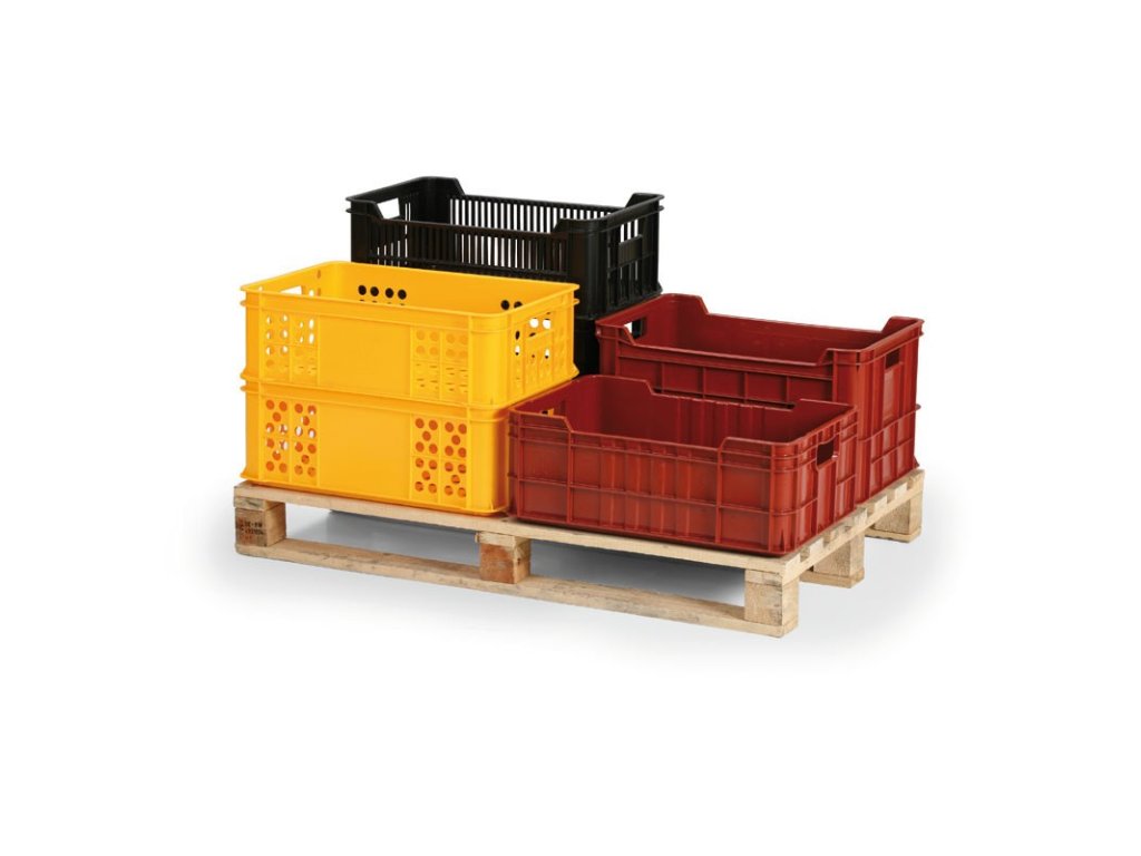 - přepravky jsou konstruovány v rozměru 600 x 400 mm a optimálně využívají prostor na při skladování a transportu na paletách